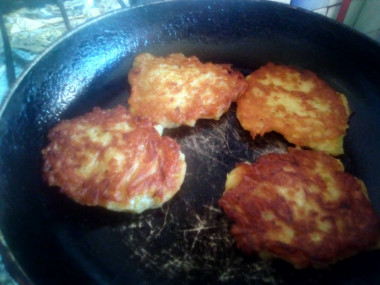 Муку добавляла постепенно. Тесто получилось более густое чем на обычные оладьи. Жарила на растительном масле с двух сторон, на среднем огне.