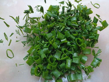 Свежую зелень укропа и зеленый лук очень тщательно промойте под проточной холодной водой и обсушите. Нарежьте лук и укроп, добавьте в окрошку.