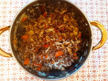 Рецепт гречки с курицей и овощами стал для меня настоящим открытием! Простота приготовления и доступность ингредиентов — это то, что нужно для будничного ужина. Блюдо получилось очень сытным, но при этом легким, что особенно порадовало. Из овощей я взяла лук и морковь. Куриная грудка у меня уже была вареная, поэтому я добавила ее, томатную пасту не добавляла, но и без этого получилось вкусно:) Также хочу отметить, что на мой взгляд и вкус, 1.5 стакана воды на 1 стакан гречки - много, поэтому я взяла только 1 стакан воды, так гречка получится более рассыпчатой. Обязательно приготовлю еще раз, возможно, добавлю немного специй для разнообразия.