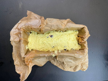 Выпекала 40 минут в форме, застеленной пергаментной бумагой, которую предварительно смазала сливочным маслом. Кекс пропекся хорошо, к бумаге не прилип.