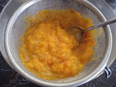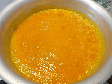 Измельчите горячую массу из абрикос погружным блендером.