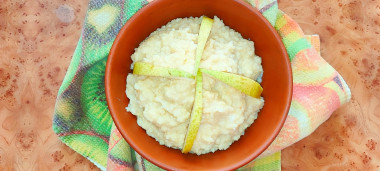 Добавление яйца в конце – ключевой момент, который превращает обычную кашу в воздушное лакомство. А украшение грушей – прекрасная идея, которая придаёт свежие, сладкие нотки.