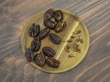 Из финика извлеките косточку. При этом старайтесь надрез сделать как можно меньше.