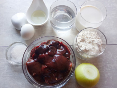 Как сделать блины на воде фаршированные печенью куриной Подготовьте все необходимые ингредиенты.