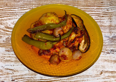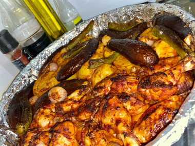 Данный рецепт невозможно не приготовить, легко, быстро и просто. Когда не знаешь что же в очередной раз приготовить на ужин или лень возиться, этот рецепт как раз для этого. В маринад добавила томатную пасту. Добавила баклажаны и перец. Получилось просто пальчики оближешь, в прямом смысле.