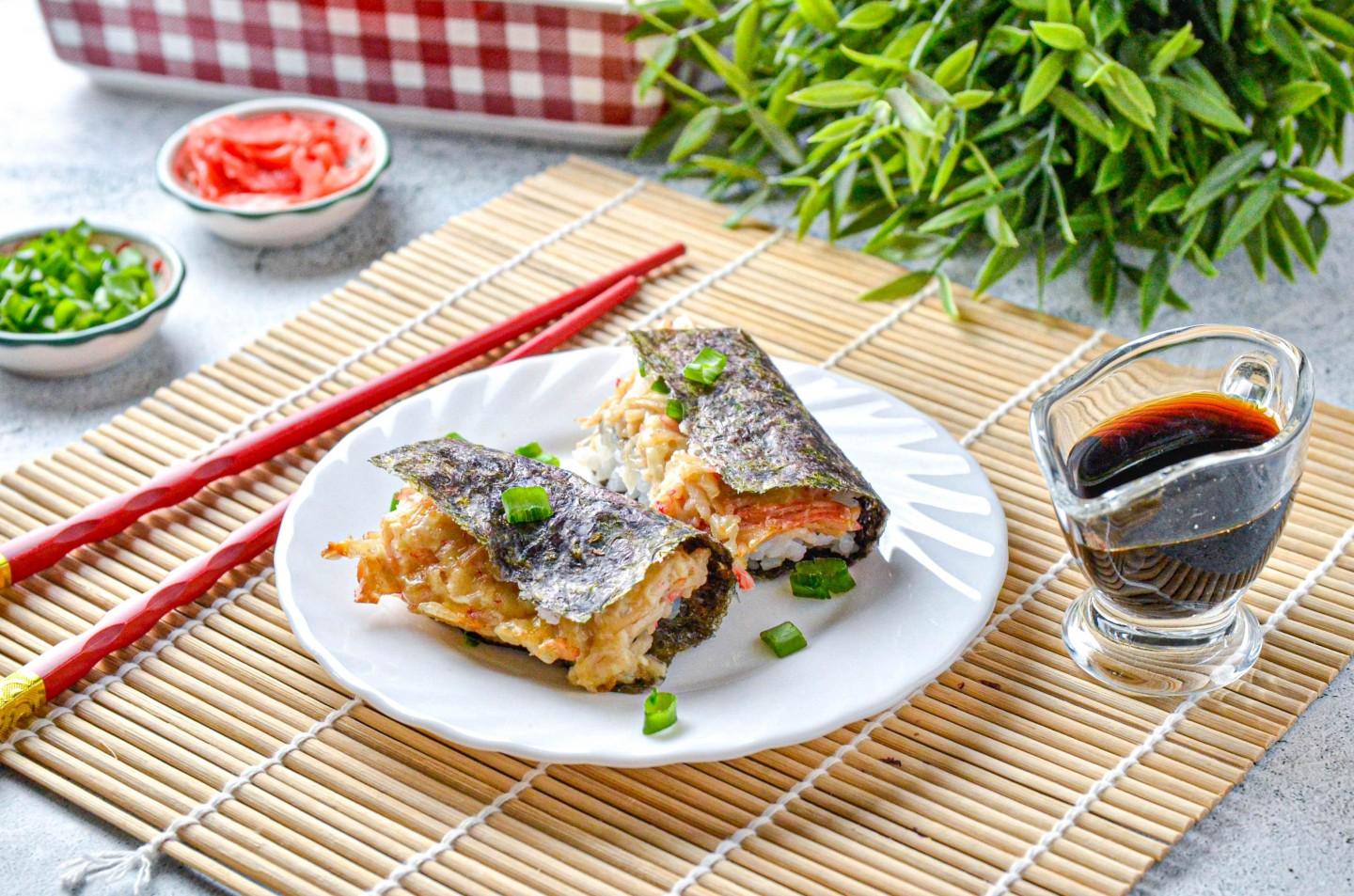 Вегетарианский вариант: замените крабовые палочки на тофу, авокадо и огурец.