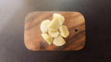 Картофель очистите. Если картофель крупный, разрежьте его пополам. Мелкий и средний картофель оставьте целиком.