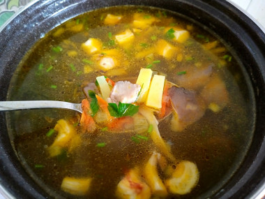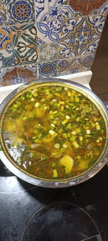 Из указанного количества компонентов получается первое блюдо средней густоты.