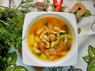 Грибные супы очень вкусны со сметаной, суп с вешенками не исключение.