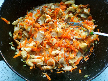 Нарежьте вешенки небольшими кусочками, совсем маленькие грибы можно оставить целыми.