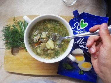 В нашей семье все любят кушать грибные супы с майонезом или сметаной, это очень вкусно!!!