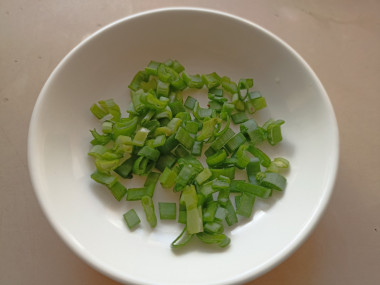 Зеленый лук помойте, обсушите. Нарежьте его тонкими колечками.