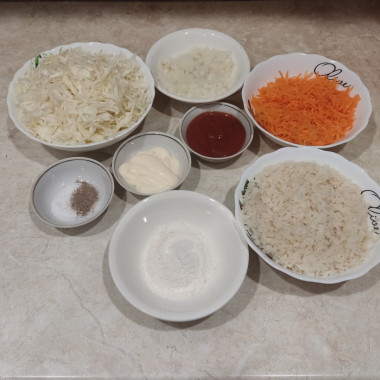 Люблю голубцы классические с мясом. Но вот нашла на сайте рецепт: постные ленивые голубцы,который захотелось попробовать. Рис предварительно отварила. Капусту нашинковала, морковь натерла на мелкой тёрке, лук мелко порезала. На сковороде обжарила лук с морковью, добавила капусту,пережарила. Затем добавила воды и томатную пасту,протушила.