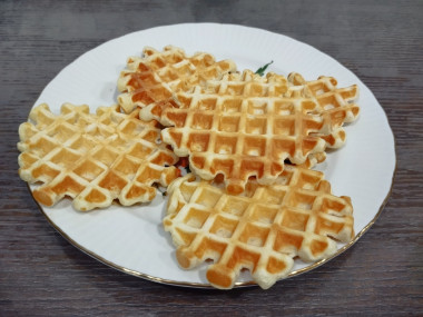 Закройте крышку и жарьте вафлю до румяного состояния примерно по 3–6 минут с каждой стороны. Но время сильно зависит от мощности вашей вафельницы и толщины теста. Готовую вафлю аккуратно снимите лопаткой. Пожарьте таким образом вафли из всего теста.