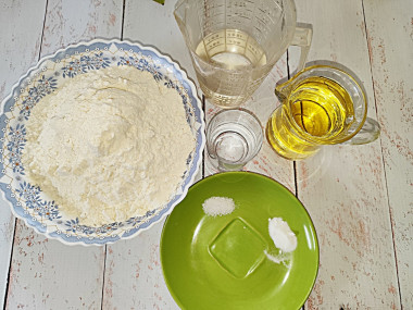 Влейте растительное масло и разотрите в крошку. Влейте воду с уксусом и замесите однородное нелипкое тесто, при необходимости добавляя еще немного муки. Важно не забивать тесто мукой, иначе готовые коржи получатся жесткими и плохо пропитаются. Дополнительные сведения о муке читайте в статьях под шагами.