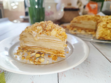 Постный торт Наполеон нарежьте на кусочки и подайте к столу. Приятного аппетита!