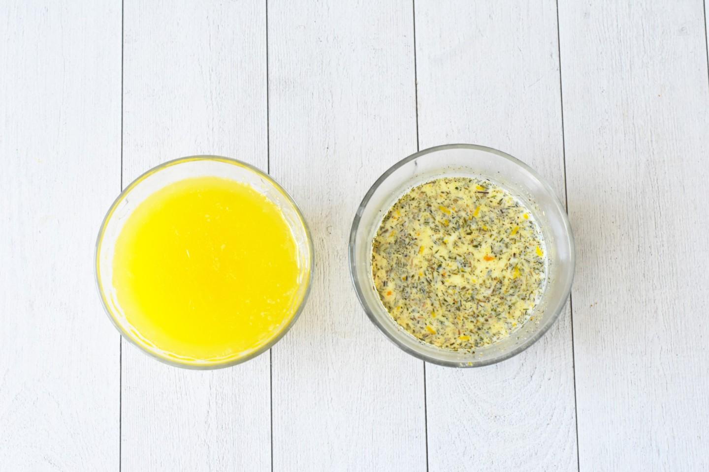 Сливочное масло растопите и охладите. Розмарин и тимьян перемолите в мельнице. Вскипятите 100 мл молока от общего количества, всыпьте тертую цедру лимона и апельсина, розмарин, тимьян, кардамон и мускатный орех и перемешайте. О том, как правильно растопить сливочное масло, читайте в конце рецепта.