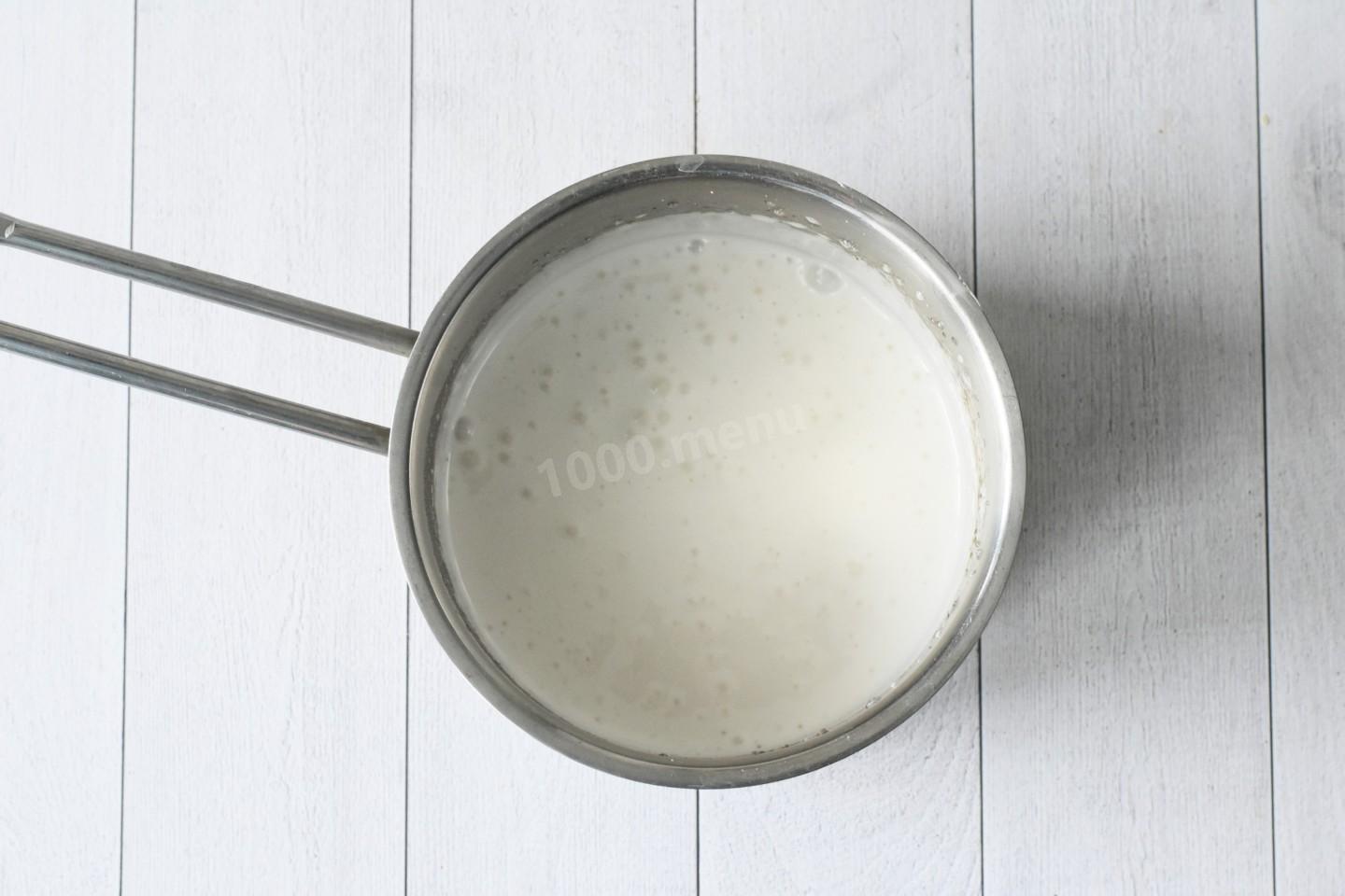 В миске соедините оставшееся теплое молоко (37-40℃), 1 ст. л. сахара, 1 ст. л. муки и дрожжи и перемешайте. Оставьте опару на 20 минут в тепле для активации дрожжей.