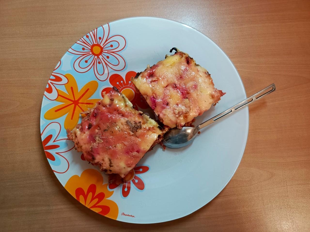 картофельно-свекольная запеканка со свининой