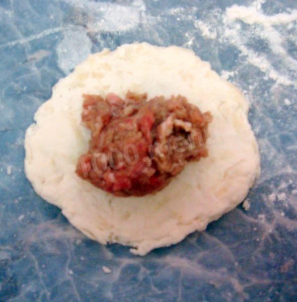 На лепешки выложить фарш.