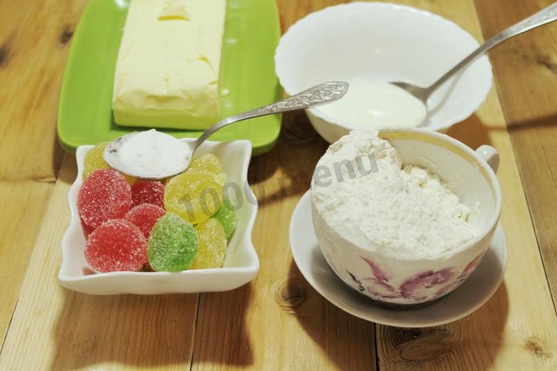 Как приготовить песочные рогалики с мармеладом на сметане? Для того, чтобы испечь рогалики, нужно взять минимум доступных продуктов: масло, сметана, мука, сода+ любой уксус (или разрыхлитель) и мармеладки для начинки.