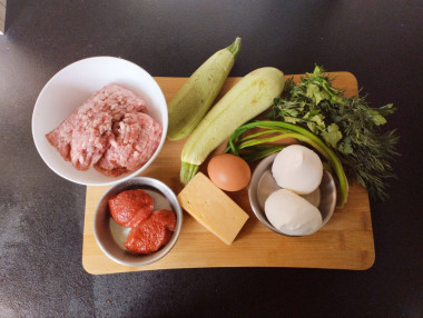 Как сделать пп лазанью из кабачков с фаршем в духовке? Подготовьте продукты. Кабачки возьмите по возможности молодые, которые можно использовать с кожицей и семенами. Фарш подойдет любой — свиной, говяжий, смешанный, куриный, у меня из индейки. Вместо томатного соуса можете взять томатную пасту или измельченные помидоры.