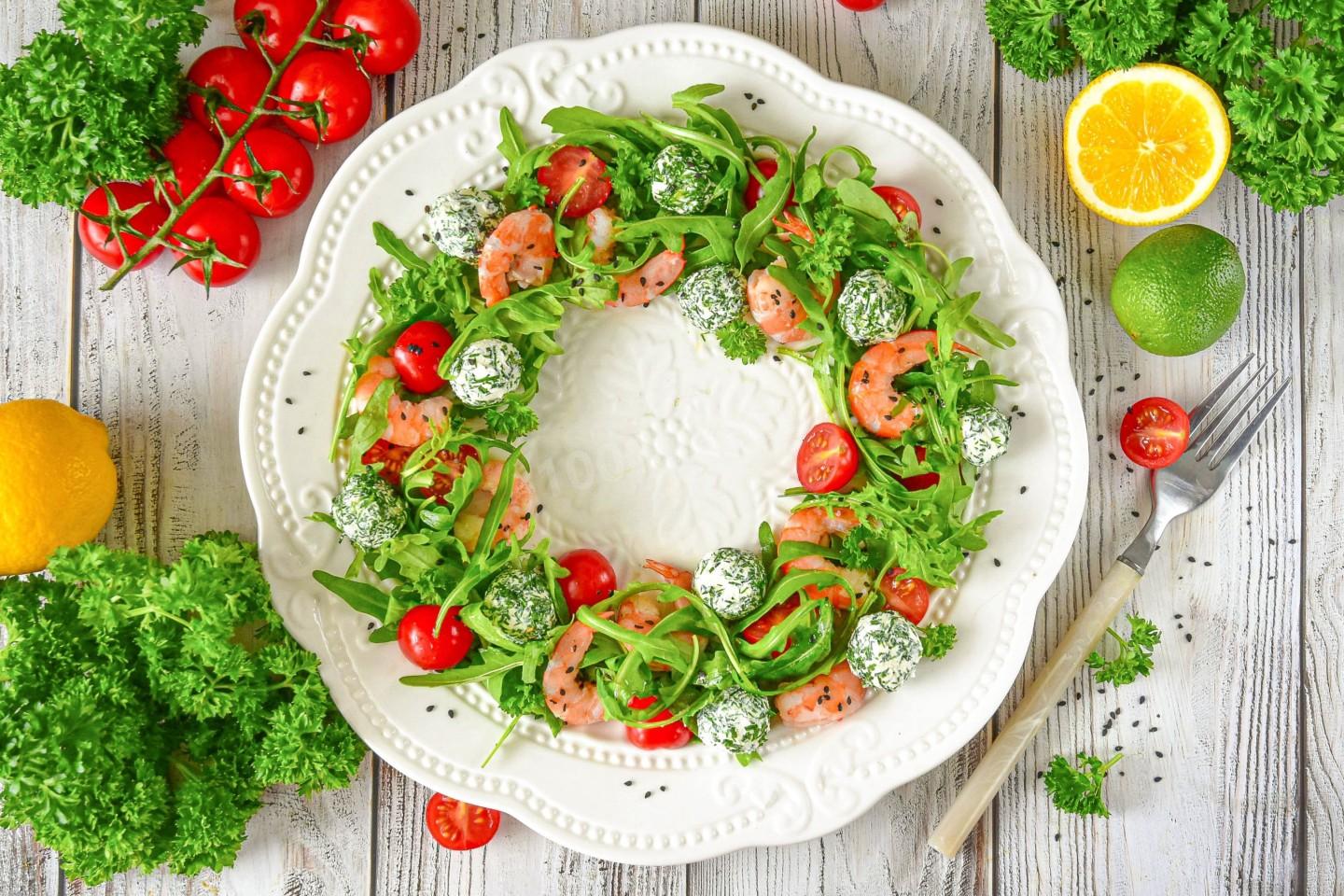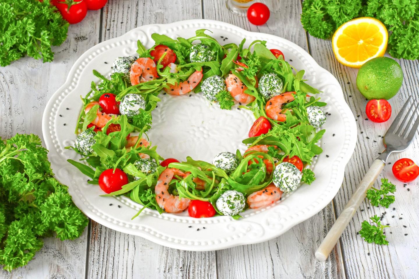 Шаг 1. Как сделать салат Рождественский венок с креветками и рукколой?