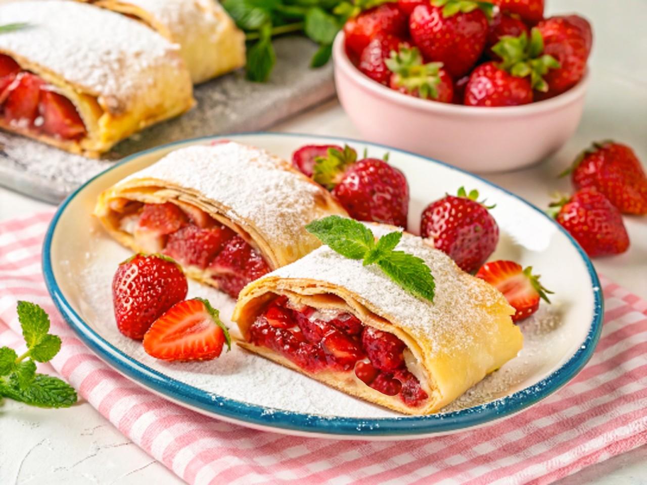 Штрудель - это традиционное блюдо австрийской кухни, но его популярность распространилась по всему миру, особенно в Центральной и Восточной Европе. Его начинкой могут быть как фрукты, так и орехи. Наш штрудель с клубникой - это быстрый и простой способ удивить семью и друзей сочным лакомством, которое идеально подойдет для летнего пикника или уютного чаепития.