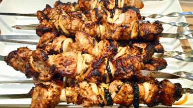 А мы с мужем делам шашлык в медовой заправке очень вкусно: