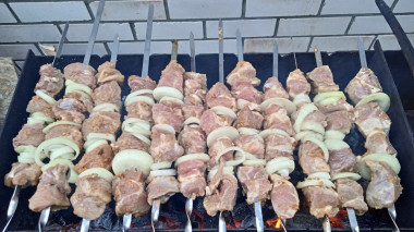 .Я обожаю шашлык.Мое самое любимое блюдо,по мне так никакого праздника не получится,если нет шашлыка.И отдых без него-не отдых.Шашлык получается немного остреньким по вкусу,потому что мясо берёт в себя немного остроты и вкуса горчицы.Ещё резкость вкуса с нежностью сочетаются + мясо.Лучок порезанный колечками обожаю,потому что его можно потом хрумкать прям из маринада