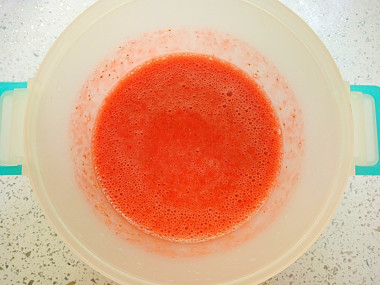 Пробейте ягоду с сахаром погружным блендером до полной однородности.