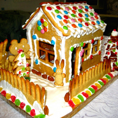 Сразу хочу сказать, что этот домик сделан несколько лет назад, за основу был взят этот рецепт. В ту пору мой рейтинг на сайте не давал возможность выставлять фото. Сейчас решила восполнить этот пробел. Вновь нахлынули те воспоминания, когда мы с внучкой "строили" этот дом. Тут мы были и кулинарами, и архитекторами, и художниками