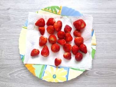 Клубнику помыла в холодной воде и обсушила, выложив на бумажное полотенце. Так в пироге не будет лишней влаги и тесто хорошо пропечется.
