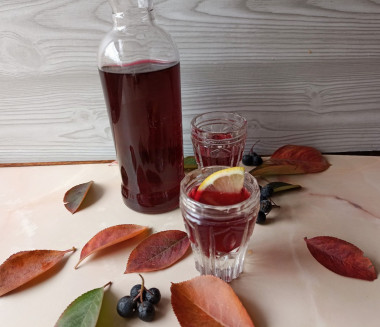 Собрала черноплодную рябину, основную массу заморозила, а небольшое количество ягод оставила для приготовления настойки из черноплодной рябины. Ягоды перебрала, промыла, просушила, наколола зубочисткой, сложила в банку, добавила натёртую лимонную цедру и залила водкой. Сахар не добавляла. Настойку поставила в темное место на две недели, периодически встряхивала. Готовую настойку процедила. Красивая, рубиновая настоечка получилась, запаха водки вообще не чувствуется, только тонкий ягодно-лимонный аромат. Спасибо автору за рецепт!