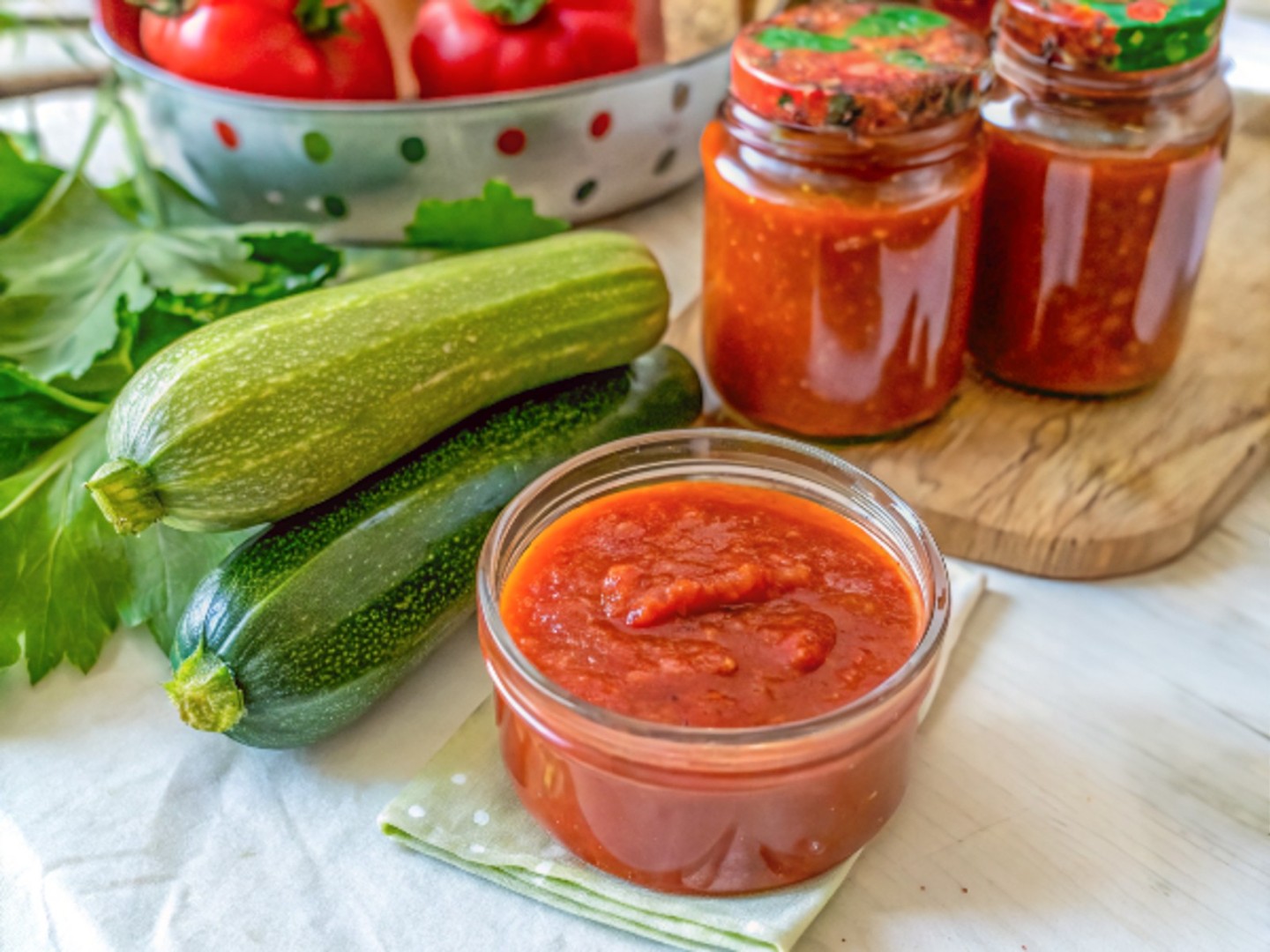 Соусы на основе томатов и овощей имеют глубокие корни в средиземноморской и восточноевропейской кухнях. Рецепт с кабачками — это пример удачной советской и постсоветской дачной кулинарии, где главный принцип — ничего не пропадает зря.