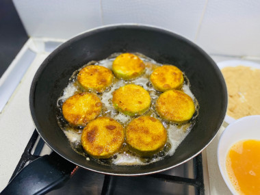 Обмакните каждый кружок кабачка в яйцо, затем в панировочные сухари и обжарьте на разогретой сковороде с маслом до золотистого цвета. О том, как выбрать сковороду и идеальное для жарки масло читайте в отдельных статьях, ссылки под шагами.
