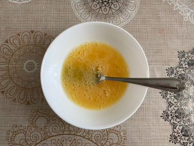 Яйца тщательно помойте для удаления с их поверхности грязи и бактерий, затем обсушите. Разбейте яйца в миску, посолите и поперчите по вкусу. На этом этапе вы можете добавить ваши любимые специи. Взбейте кляр венчиком или вилкой.
