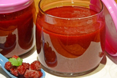 Оставшуюся малину переложите в стерилизованную поллитровую банку, и закатайте. Я делала заготовку с учетом того, что малину будет есть маленький ребенок, поэтому решила удалить косточки. Для этого пропустите полученную массу через сито или 2 слоя марли.