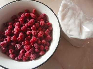 Как протереть малину с сахаром? Подготовьте свежую малину и сахар. Если у вас замороженная ягода, можете использовать ее. В этом случае постарайтесь слить с нее излишки влаги, чтобы варенье не получилось слишком жидким. Полезную информацию о зимних заготовках читайте в конце этого рецепта.