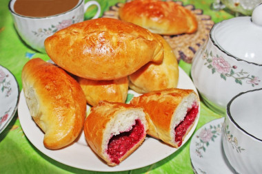 Подавайте пирожки с малиной из дрожжевого теста к столу. Приятного аппетита!