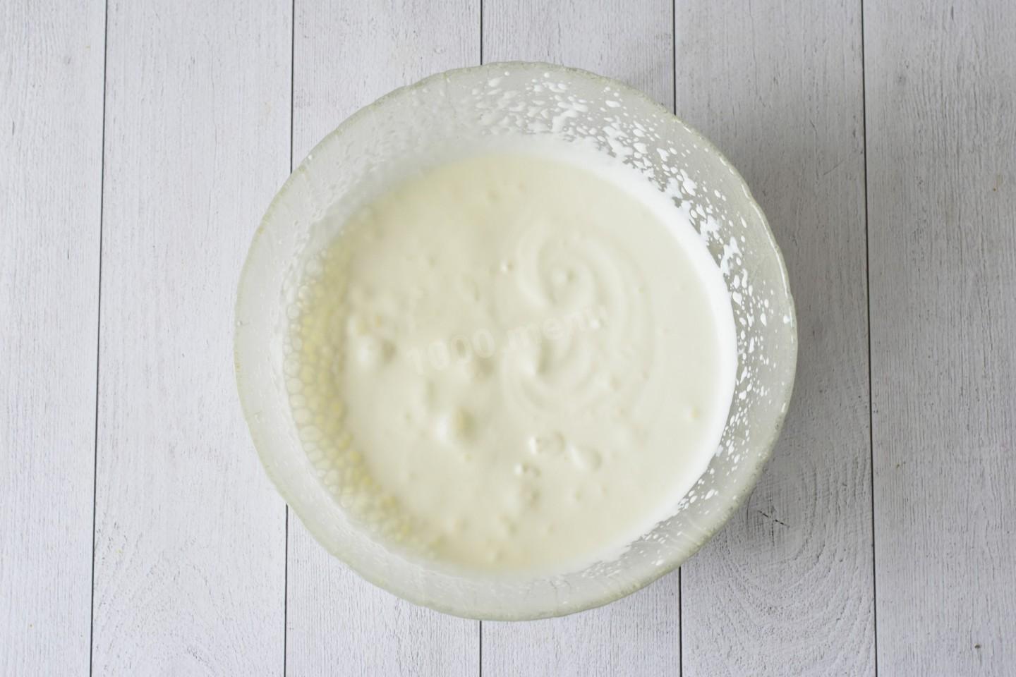 Холодные жирные сливки взбейте миксером до пышности. Важно не перебить сливки, иначе они расслоятся и из них отделится масло.