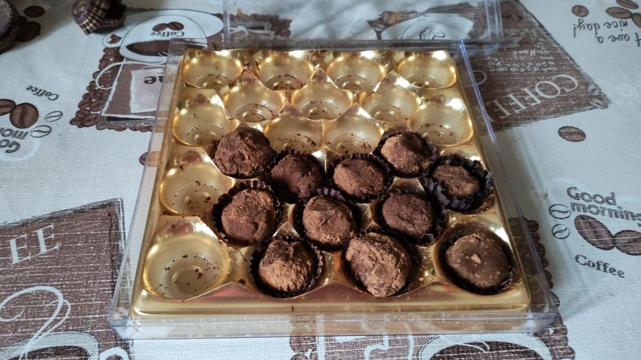 Спасибо автору рецепта! Вся семья была восхищена! Трюфели ну ооочень вкусные! Получается мягкий ганаш, который довольно легко катается в шарики. Готовила точно по рецепту, с единственным изменением - не положила сахарную пудру, т.к. у меня был горький шоколад 2-х видов - один это плиточный для плавления с сахаром и второй - в каллетах, без сахара. Так я сахар стараюсь не есть, то готовила без него, и от этого конфеты только выиграли на мой взгляд. Пропорции в рецепте - отличные, можно готовить, успех 100% гарантирован! Если хочется более твердую консистенцию - можно положить чуть меньше сливок, например, не 150г, а 100г. Но моим так понравилось, что не буду даже заморачиваться. Очень спешила, поэтому шарики на фото не очень аккуратные, но это никого не смутило, еле успела сфоткать то, что осталось, на самом-то деле их в 3 раза больше!