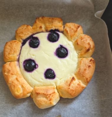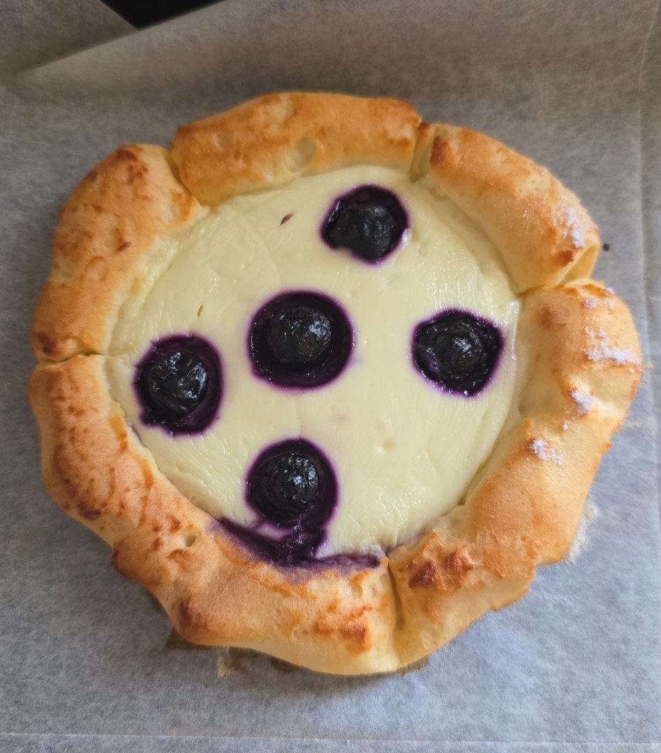 Этот рецепт попался мне с небольшими модификациями, но в целом идентичен (300 г 9% творога, 100 г рисовой муки, 1 ст.л. сахара+1 пакетик ванильного сахара в тесто, 1 яйцо и один белок, 0.5 ч.л. пекарского порошка, щепотка соли. Заливку 170 г мягкого творога - у меня это 5% белый творог, 2 ч.л. сахарной пудры, 1 желток и ягоды для красоты, у меня была голубика из заморозки.