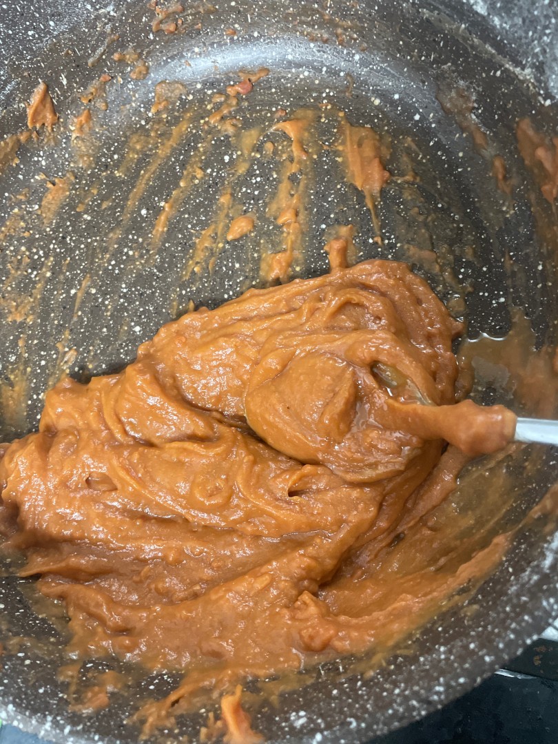 Делала х2 с мукой, пастой и водой, муку не пережарила, какие то комки, цвет неприятный. Сомнительно.