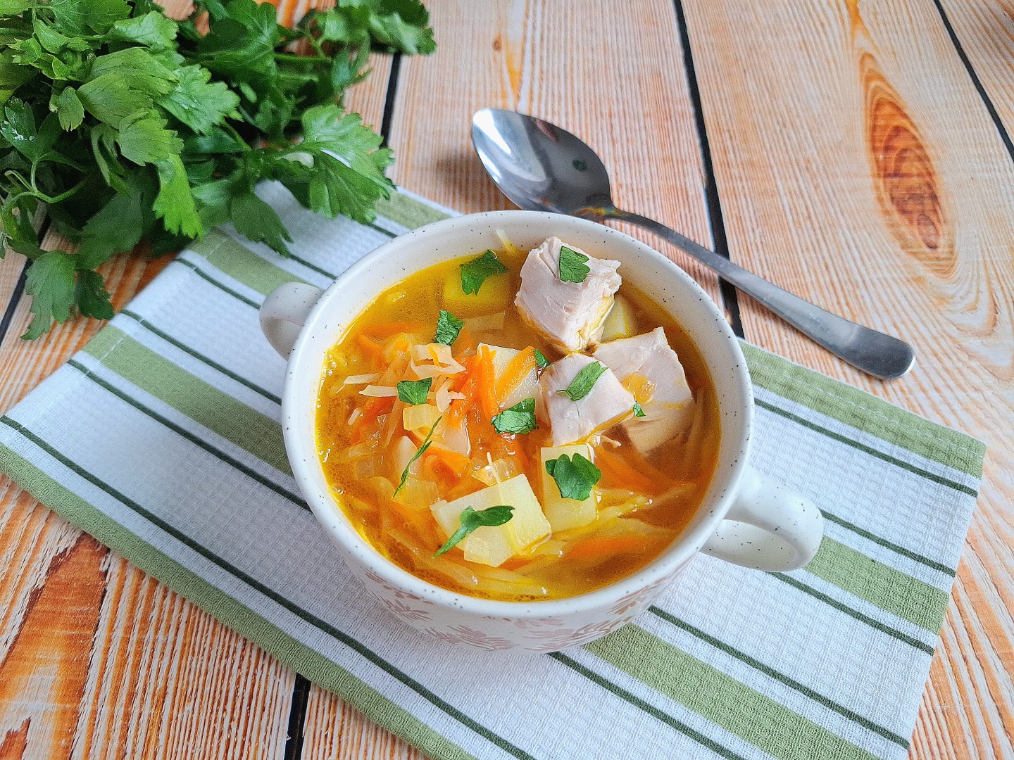 Как вкусно звучат ваши щи! Вы верно подметили: куриная грудка на кости даёт лёгкий, но насыщенный бульон. И спасибо, что поделились про зимнюю капусту — действительно, если она жёсткая, лучше закладывать её вместе с картошкой, чтобы овощи успели стать мягкими.
