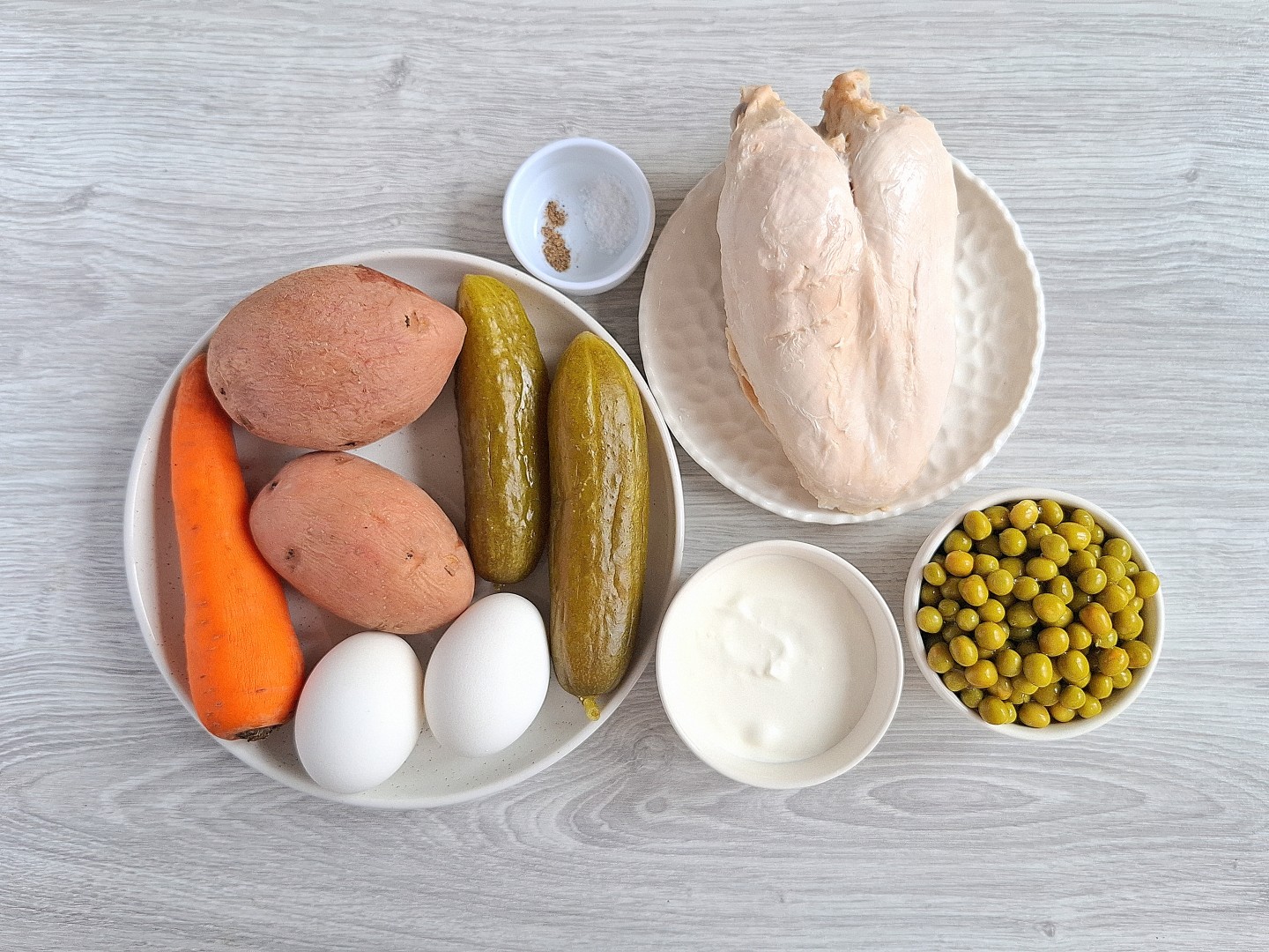 К празднику задумала сделать оливье, но не хотелось, чтобы салат был слишком "тяжелый". На сайте нашла как раз подходящий вариант - салат ПП Оливье без майонеза с йогуртом и курицей.