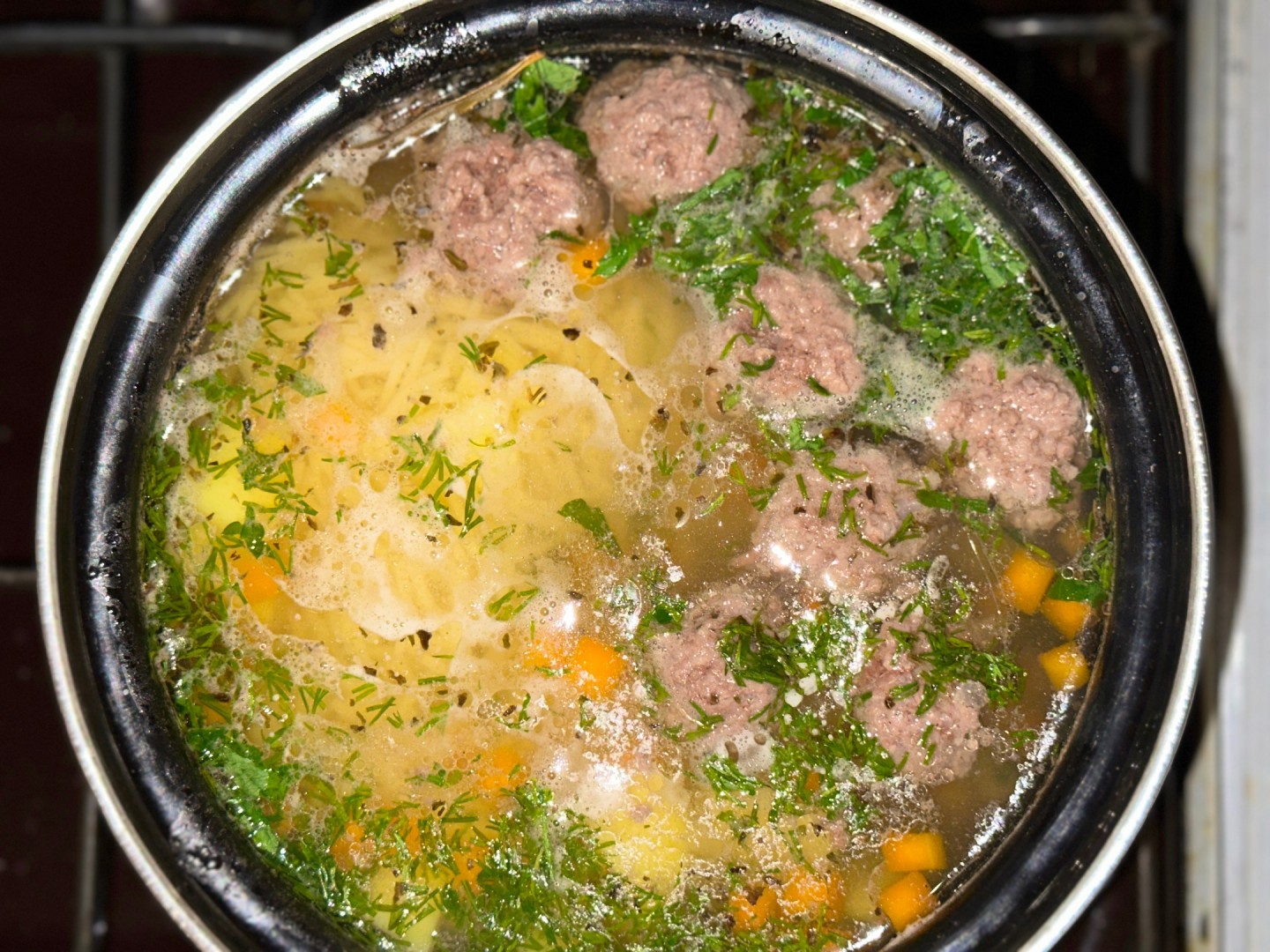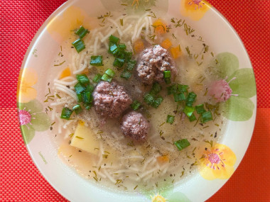 Замечательный рецепт, подходящий для того случая, когда нет времени варить бульон, а наличие первого традиция 🥹 Картофель и морковь нарезаю кубиками. Морковь не обжариваю, фарш покупной, поэтому не утяжеляю маслом. Вермишель у меня очень мелкая, тут я советую всем не перестараться и не сыпнуть её больше расчетного, иначе получится не суп с вермишелью, а наоборот 😂. Специи использовала такие, как рекомендовано в рецепте, плюс сухой базилик. В конце добавила свежие петрушку и укроп. Суп получился на 5+ спасибо, Елена ❤️