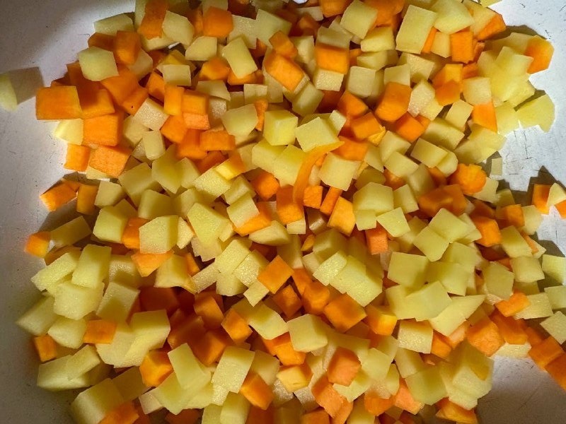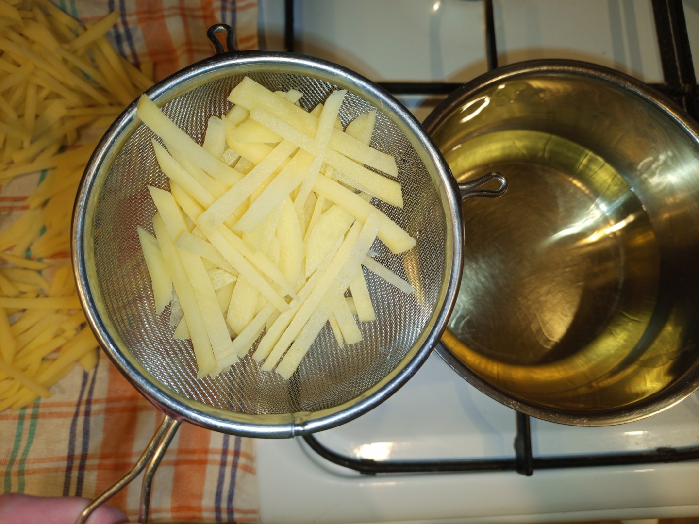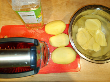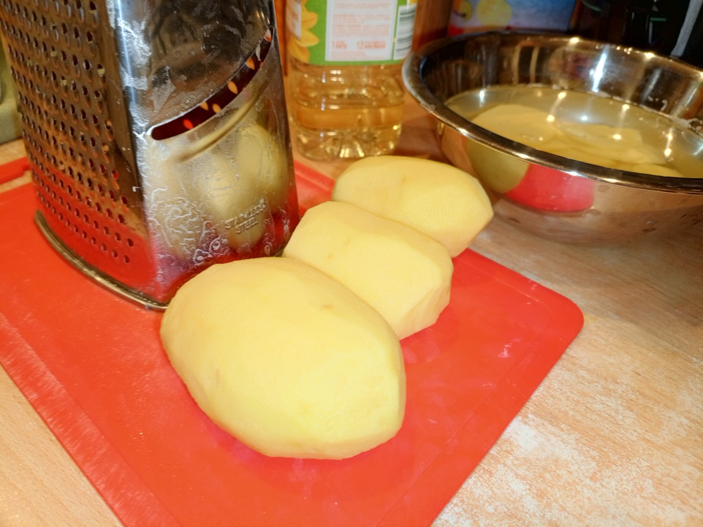 Скажу честно, граммовку не вымеряла, взяла из расчета по одной большой картофелине или две средних на человека плюс еще одна. Корейской терки у меня нет, но вполне справилась на обычной на стороне слайсера, а потом нарезала ножом соломку.