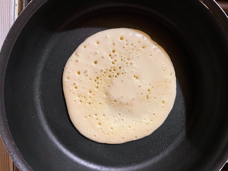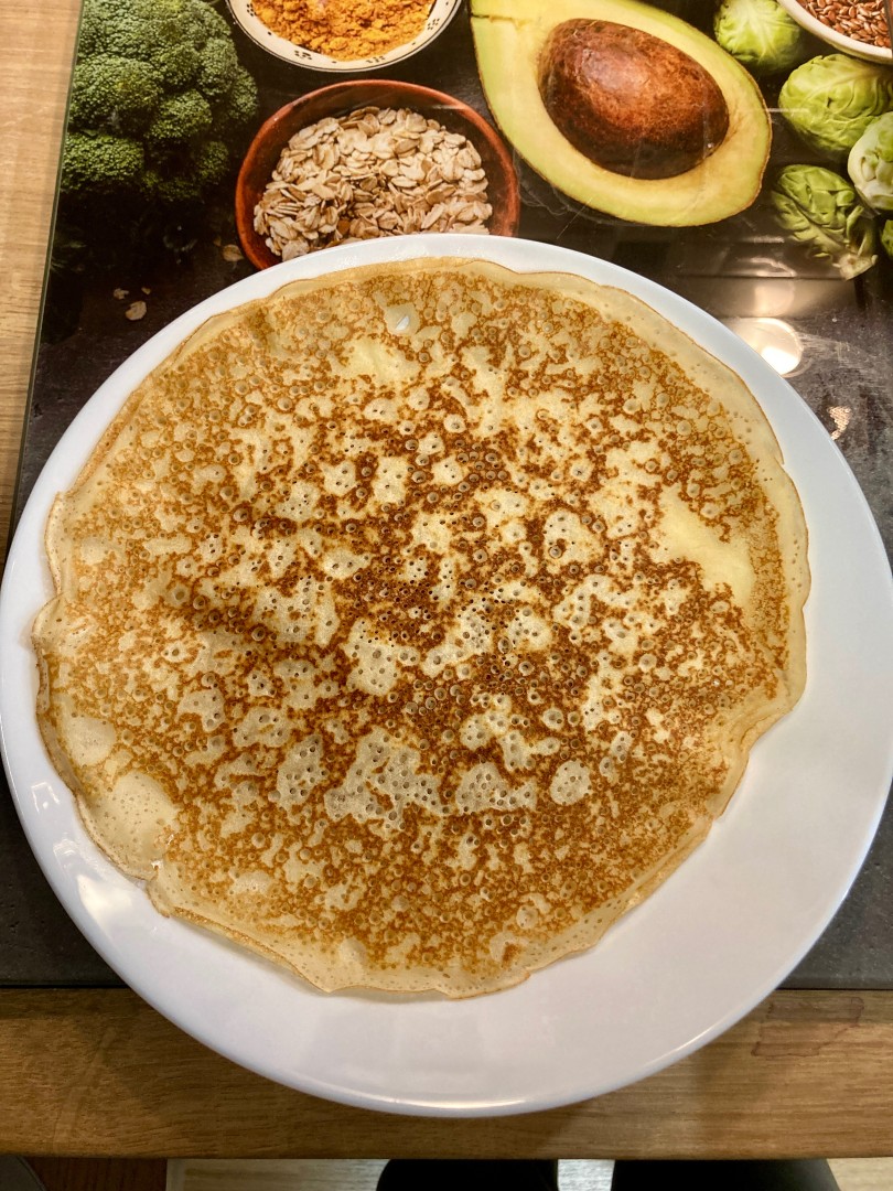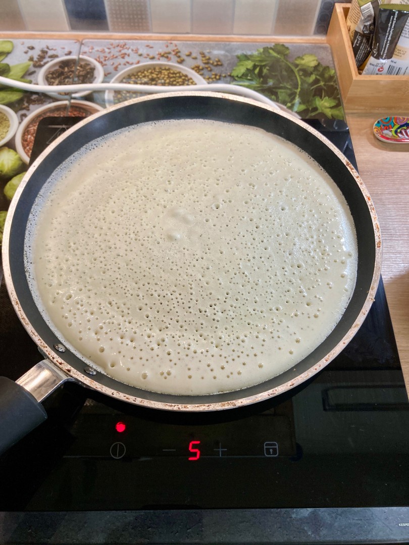 Рецепт понравился, спасибо. Дырочек полно, блины тонкие и не рвутся. Жарятся очень быстро, до 5 секунд на одну сторону.