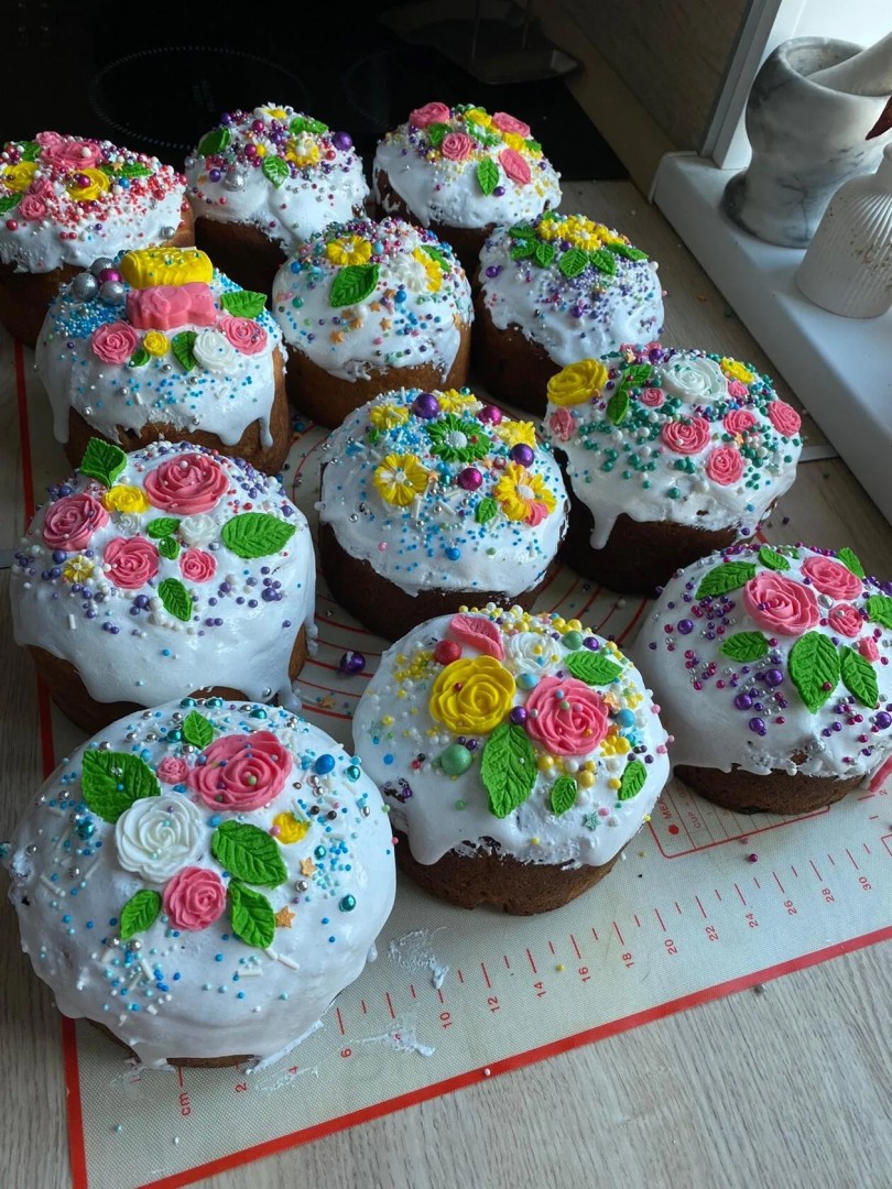 Аромат этих куличиков наполняет воздух, вызывая воспоминания о весенних праздниках и семейных собраниях. Сладость глазури гармонично сочетается с пряным вкусом теста, и каждый кусочек — это настоящая радость для гурмана.